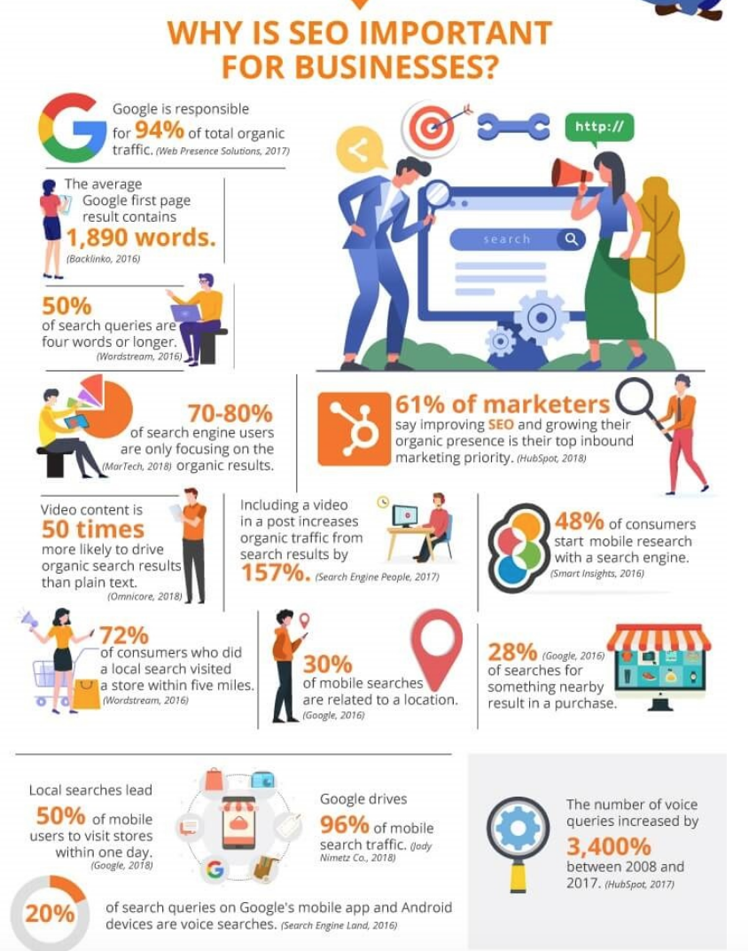 Search Engine Optimization (SEO) is a marketing discipline that increases visibility in non-paid, or organic, search engine results. It focuses on both the creative and technical elements while improving rankings, increasing traffic, and creating awareness through search engines. Figure 2 contains statistics to prove just how important SEOs are for one’s business. As the figure shows, Google is responsible for up to 94% of organic traffic on the Internet. Around 61% of marketers believe that it is important to improve one’s SEO and create more organic awareness by making it a top priority. I found this part to be intriguing because it says that video content increases organic search results up to 50 times more than plain text, which I was not aware of before analyzing this article. It shows that location is linked to 30% of mobile searches, which can be helpful when improving one’s SEO.