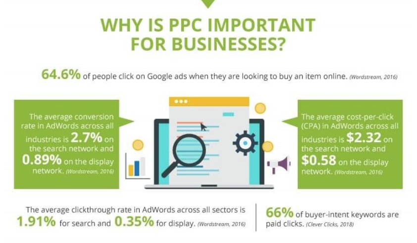 PPC represents pay-per-click, which is a marketing model that advertisers pay a single fee each time of their advertisements are clicked. One of the most popular forms of PPC is using search engine advertising. This type of advertising allows advertisers to pay for ad placement through sponsored links. For instance, someone can search a keyword for a particular service or product, and related advertisements will pop up when the keyword is searched. Figure 3 shows that around 66% of buyer-intent keywords are through PPC, and 64.6% of viewers click on ads through Google when they are looking to purchase something. The article also discusses the important of content marketing, social media, video marketing, and email marketing.